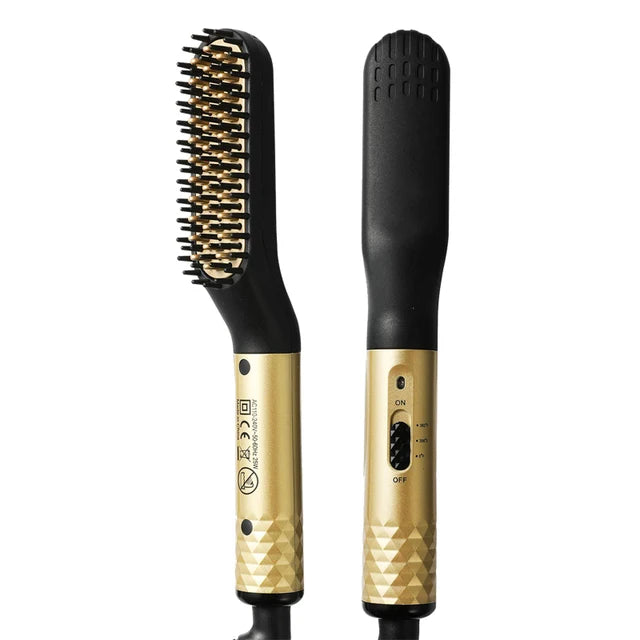 Peine alisador de pelo caliente, peine eléctrico de calentamiento de iones negativos para hombres, cepillo alisador de pelo de barba, uso en seco y húmedo, Peinador rápido