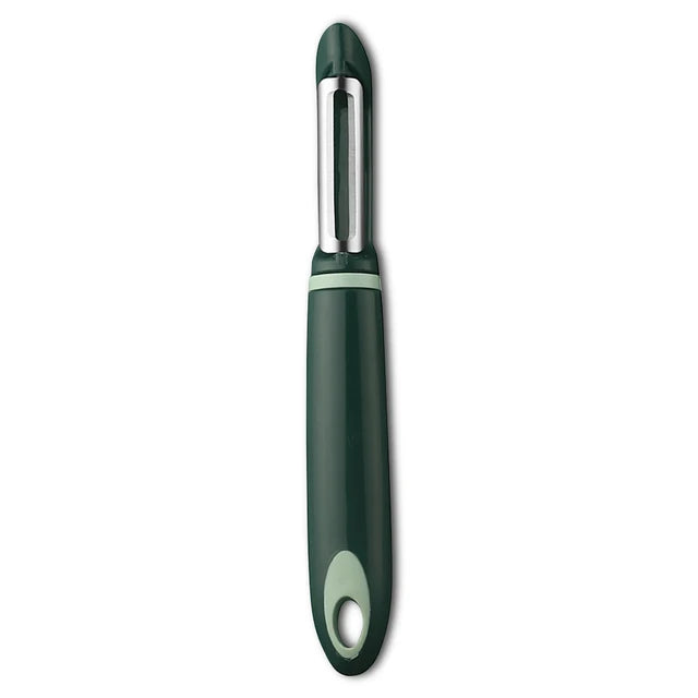 Pelador de patatas de cocina, cepillo de verduras de acero inoxidable, tomate, melón, mango ergonómico, raspador, herramienta para pelar, verde