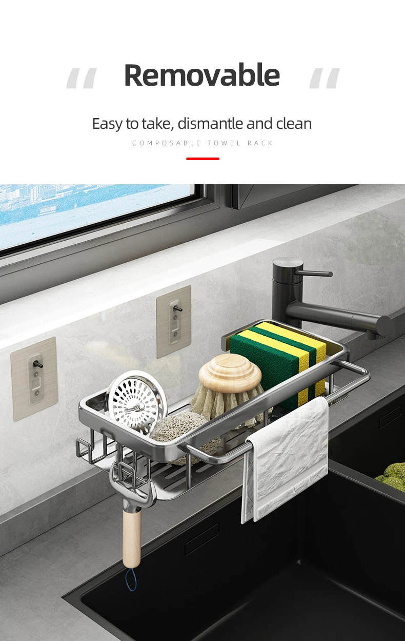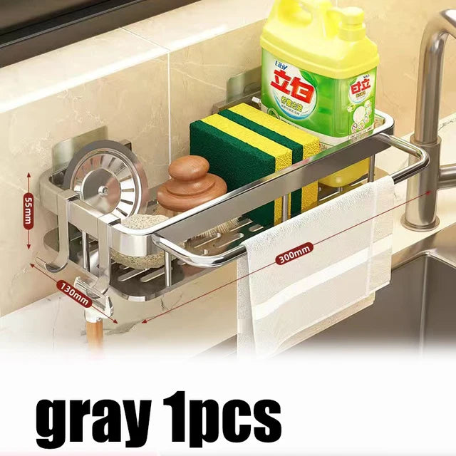 Guarde de manera experta todos sus utensilios y paños de cocina con este versátil estante de almacenamiento. Fabricado en aluminio espacial, es duradero y resistente al óxido. Las características incluyen múltiples estantes para una fácil organización y un práctico portaherramientas para fregadero. Maximice el espacio de su gabinete de cocina con este estante de almacenamiento.
