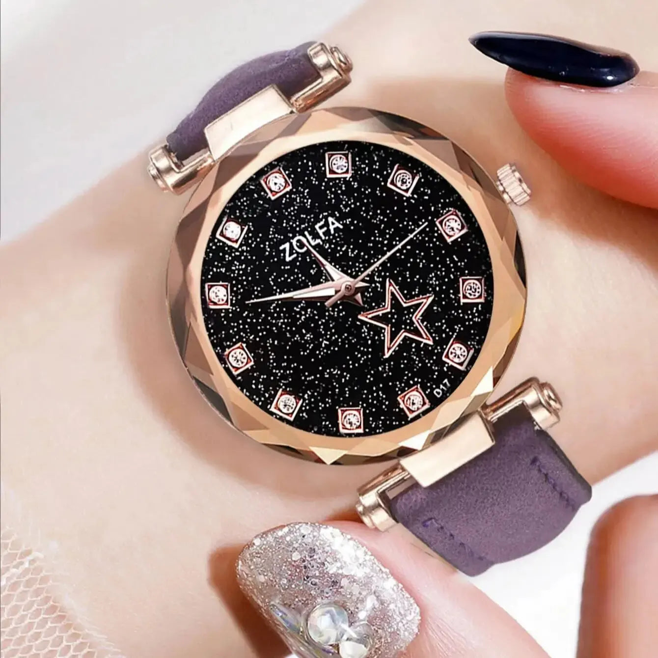• Diseño de estrella con diamantes de imitación: el reloj presenta un elegante diseño de estrella con diamantes de imitación, que añade un toque de glamour a su conjunto. Perfecto para personas vanguardistas.