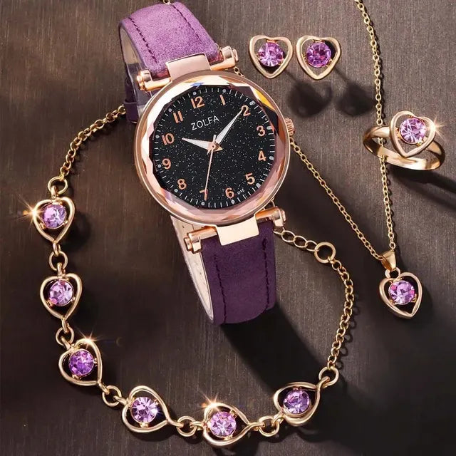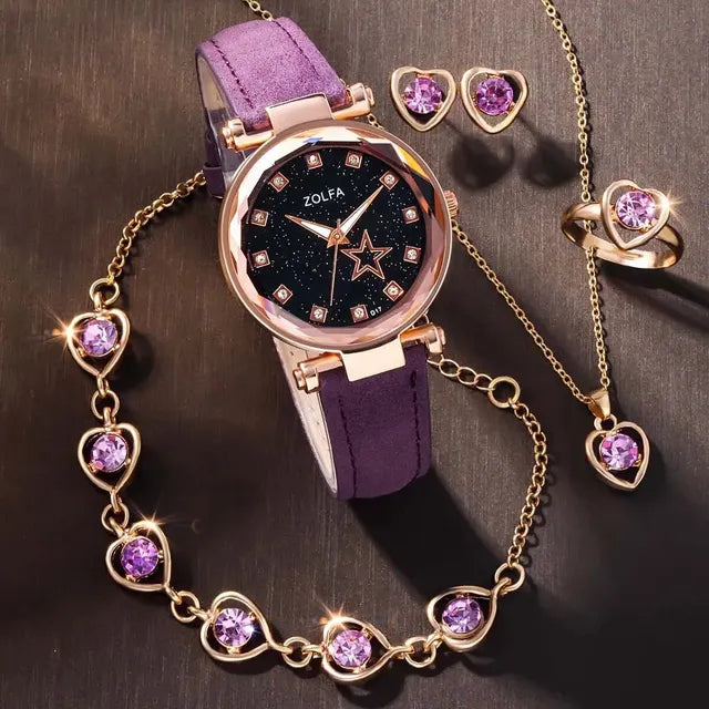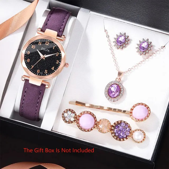 • Juego de 6 piezas: este juego de 6 piezas incluye un reloj y cinco piezas adicionales, lo que le ofrece un paquete completo para sus necesidades de moda. Es un regalo ideal para los amantes de los complementos.