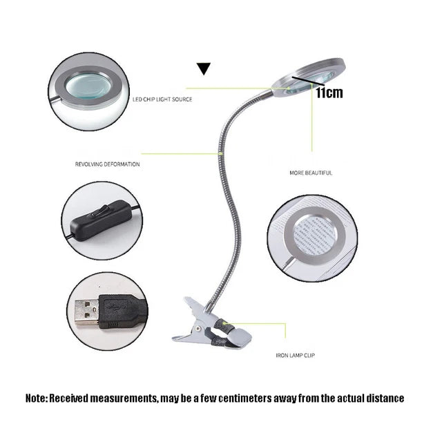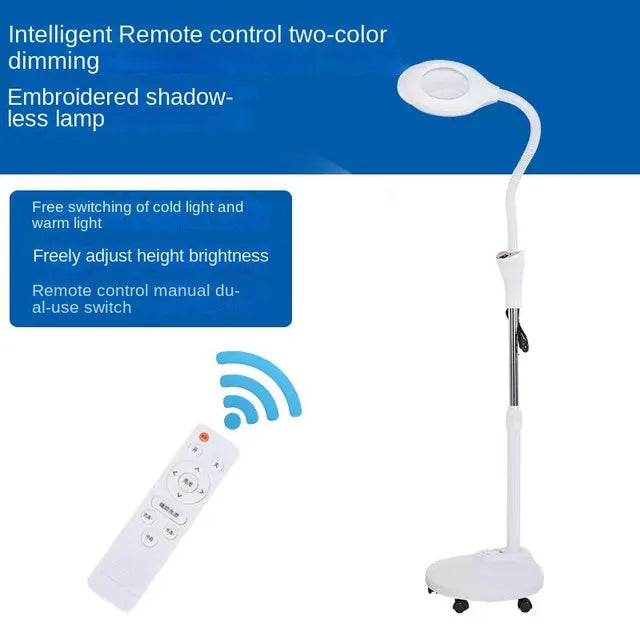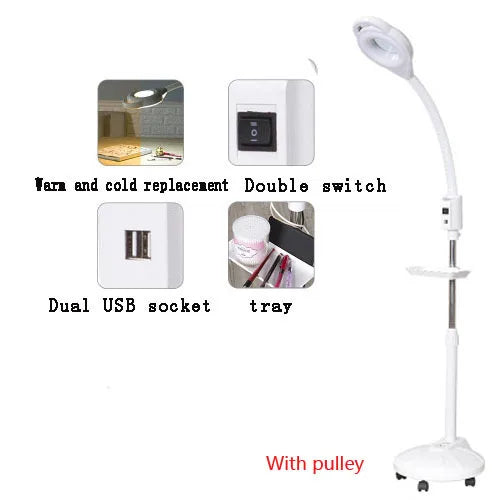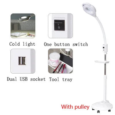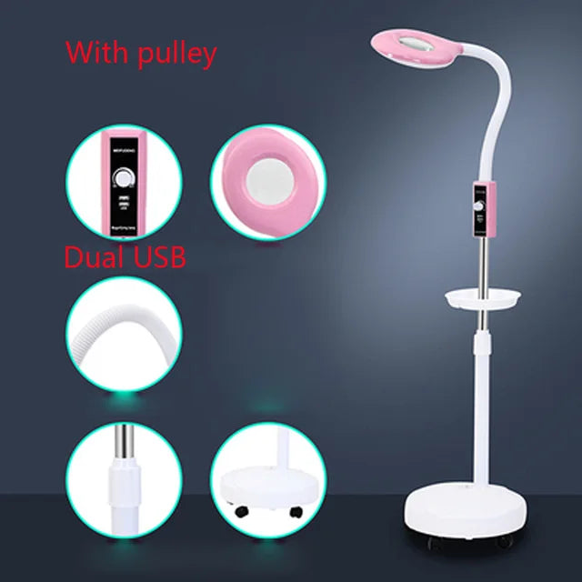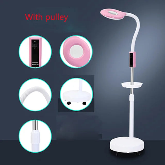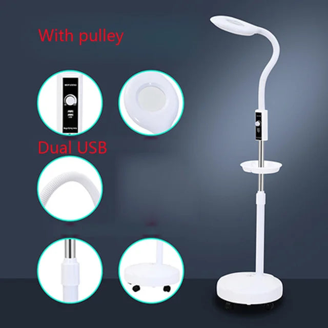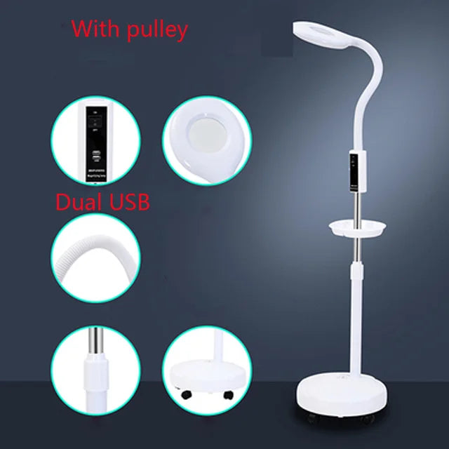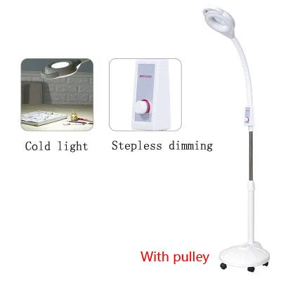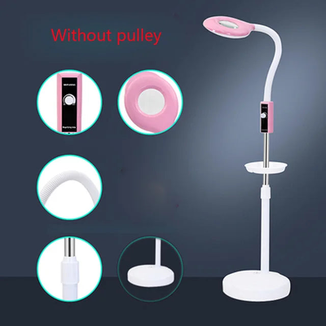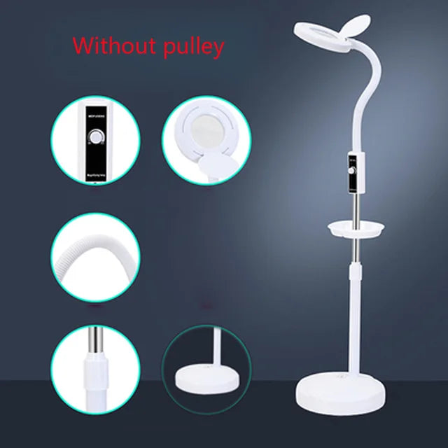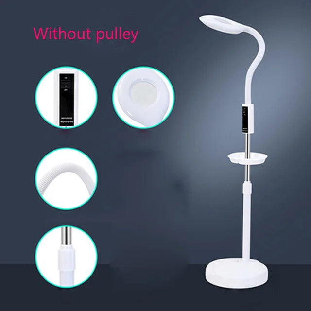 Lámpara LED de luz fría de belleza, lupa 16x para manicura, tatuaje, lámpara sin sombras, lámpara de pie giratoria con atenuación y protección para los ojos