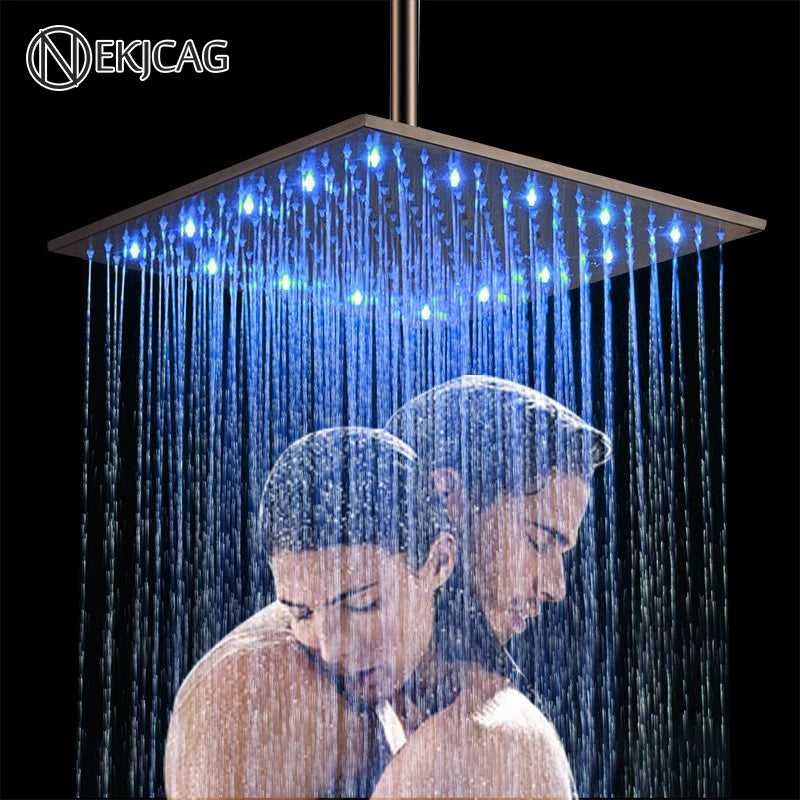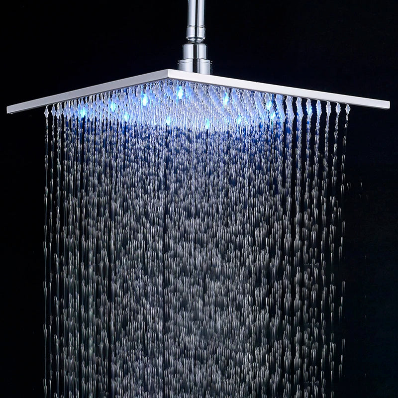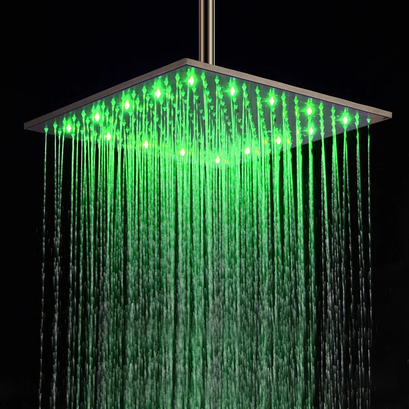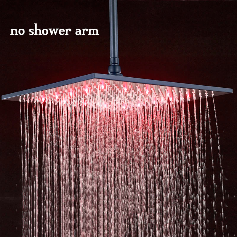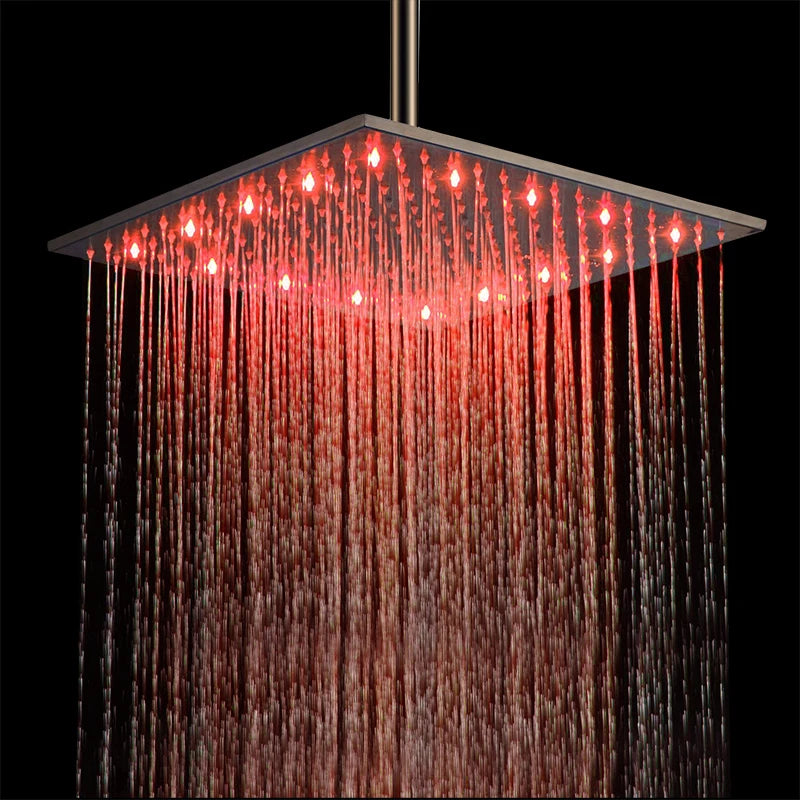 Luz LED de 16 pulgadas, ducha de lluvia, baño, rociador superior cuadrado, grifo de ducha, reemplazo de superficie pulida, tres colores variables