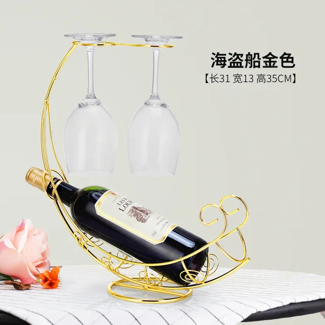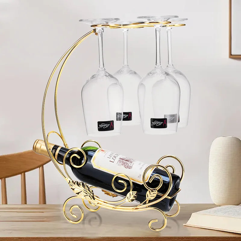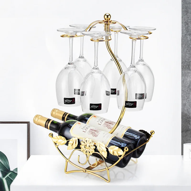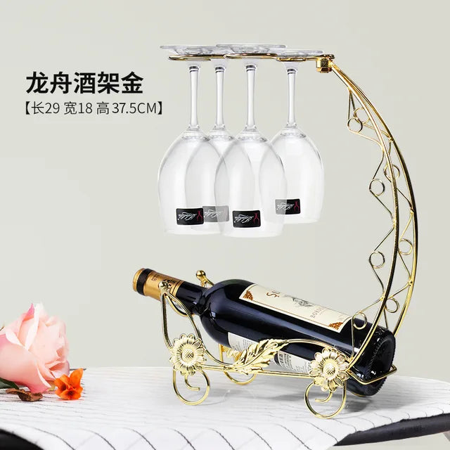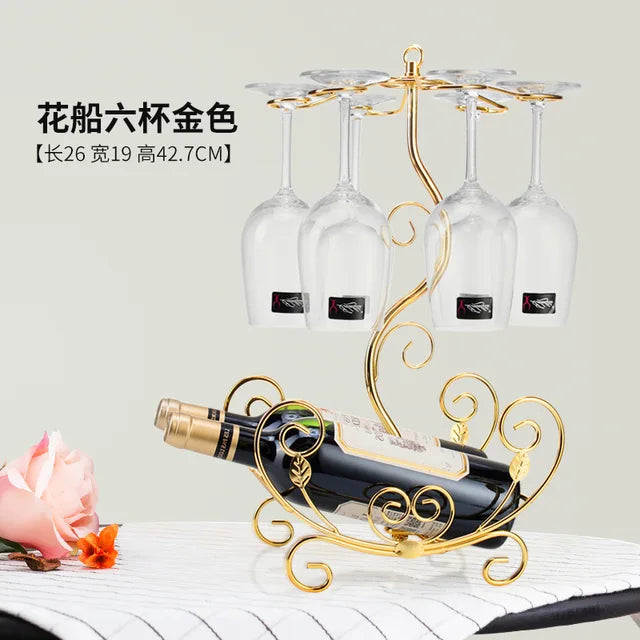 Decoración del gabinete del vino dorado de estilo ligero de lujo, estante para vino tinto, estante para copas de vino al revés, utensilios para beber de cocina para el hogar