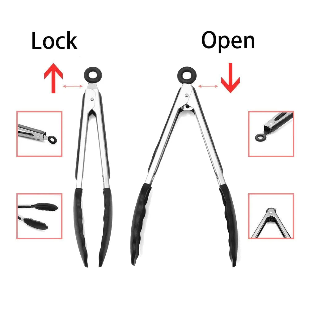 Pinzas de cocina LMETJMA Premium, pinzas de silicona para cocinar, 9 12 pulgadas, sin BPA, antiadherentes, para barbacoa, parrilla, pinzas para alimentos con bloqueo KC0253