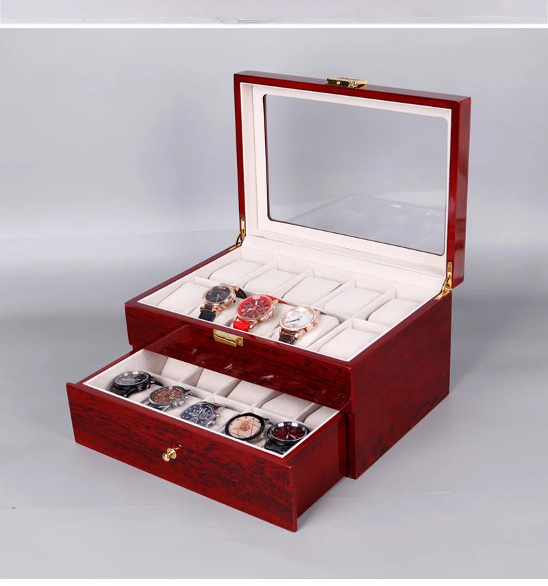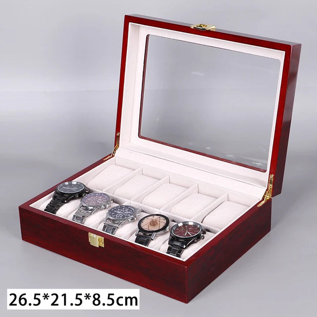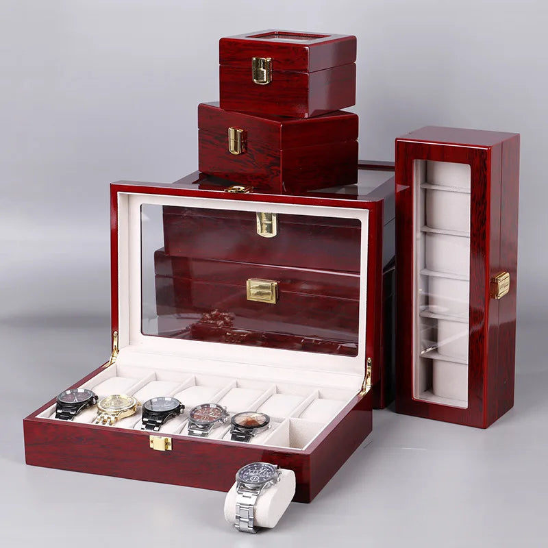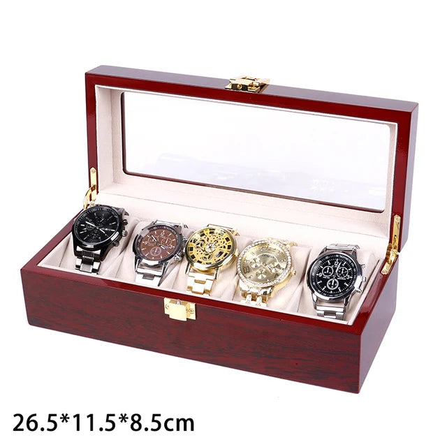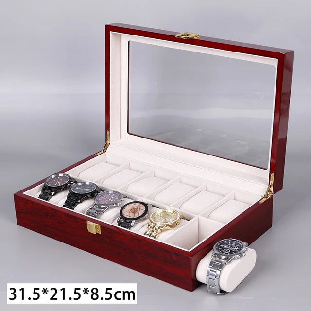 Caja de madera para reloj de lujo, organizadores de relojes con 1/2/3/5/6/10/12 rejillas, 6 ranuras, cajas de soporte de madera para hombres y mujeres, exhibición de joyería