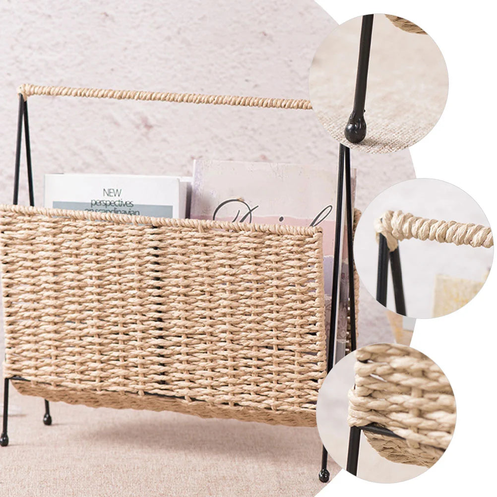Cesta de almacenamiento para revistas, soporte tejido, estante de pie, organizador de libros de ratán, soporte para suelo, archivador, cestas para aperitivos, granja de mimbre