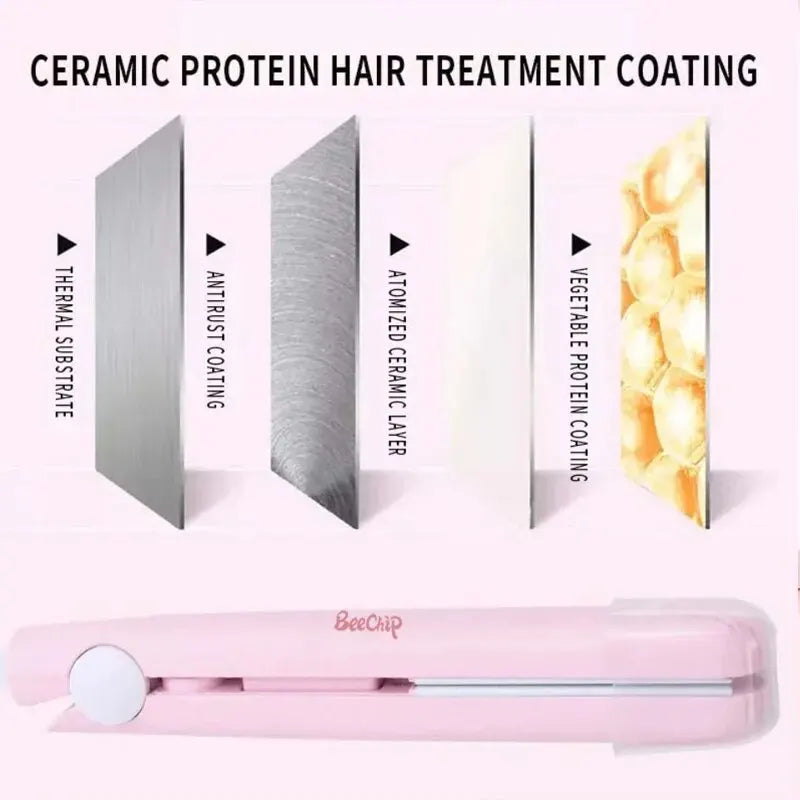 Mini plancha de pelo portapapeles, pequeño enchufe de alimentación, rizador de pelo liso, flequillo de aire para niñas, plancha de pelo portátil