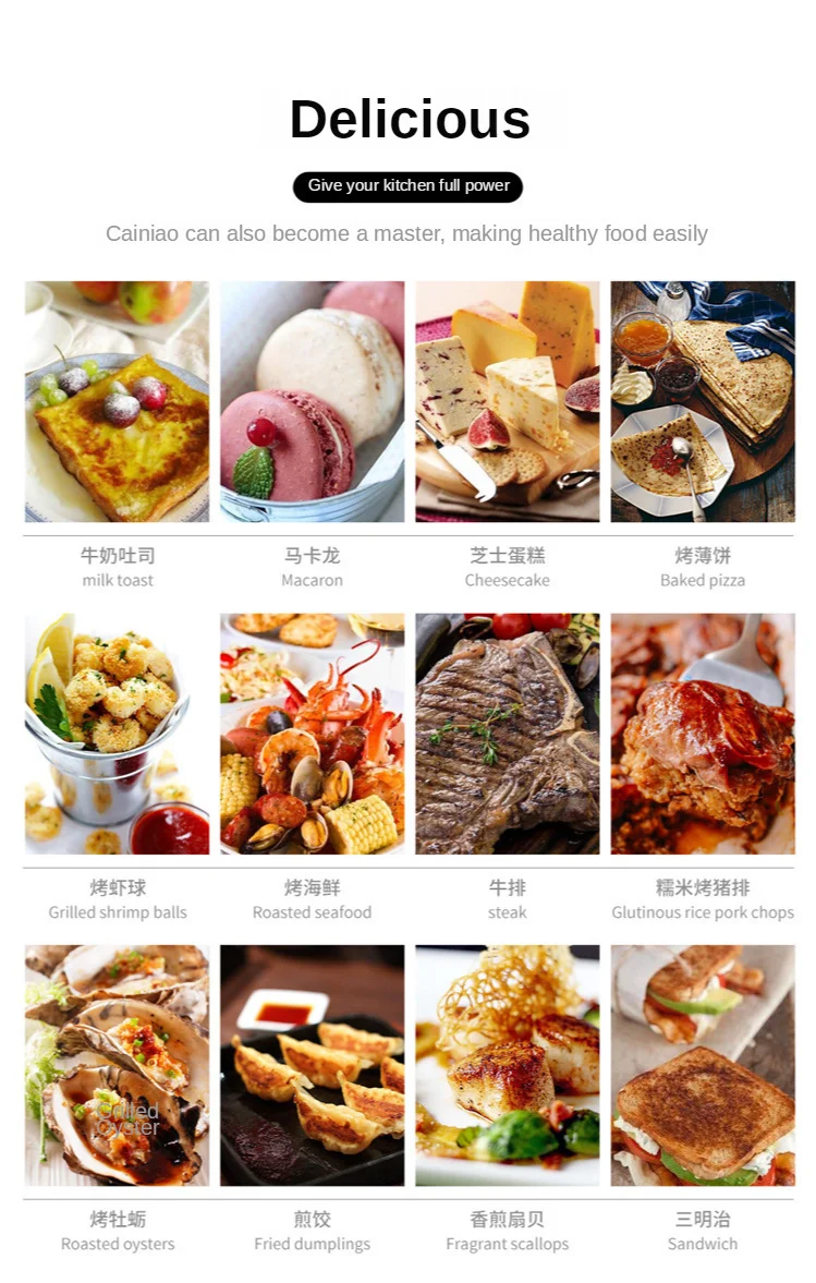 El temporizador se controla regularmente, los alimentos se hornean fácilmente fuera del horno y la temperatura se controla con precisión para evitar que se horneen.
