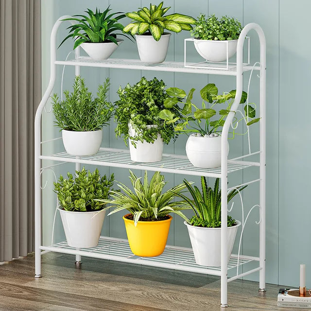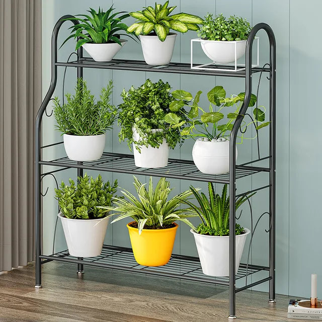 Soporte multiusos de hierro forjado de 3 capas para flores de balcón, estante para macetas, estante colgante para flores, soporte moderno Simple para plantas