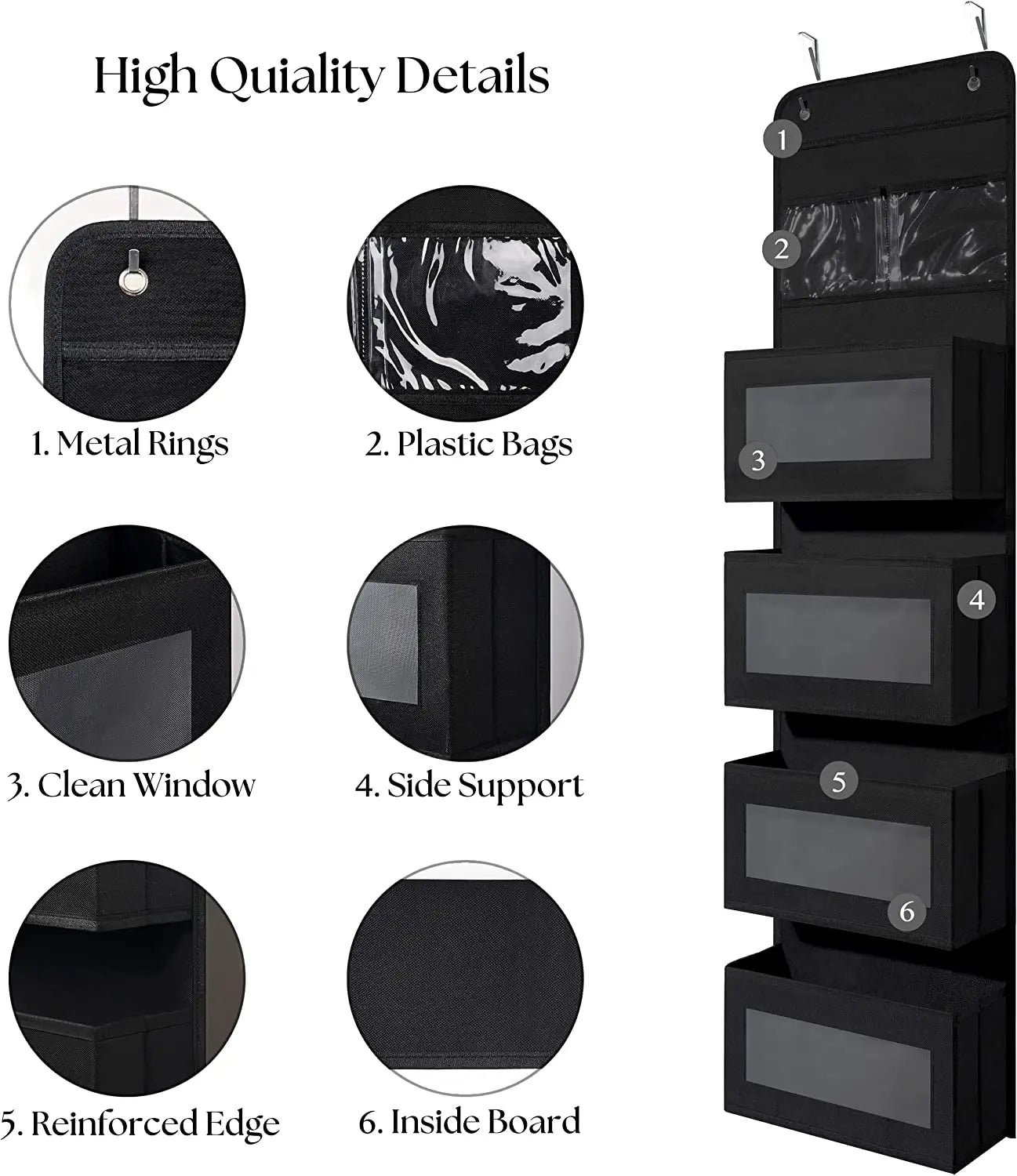¡Presentamos el versátil organizador para colgar sobre la puerta, organizador para colgar en la pared! Con 4 organizadores de bolsillo de gran capacidad, esta solución de almacenamiento multifuncional ordenará cualquier armario o baño. Di adiós a la búsqueda de objetos perdidos y dale la bienvenida a un espacio organizado y eficiente. ¡Pide el tuyo hoy!