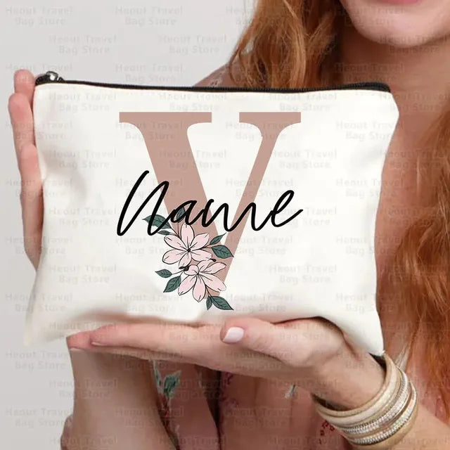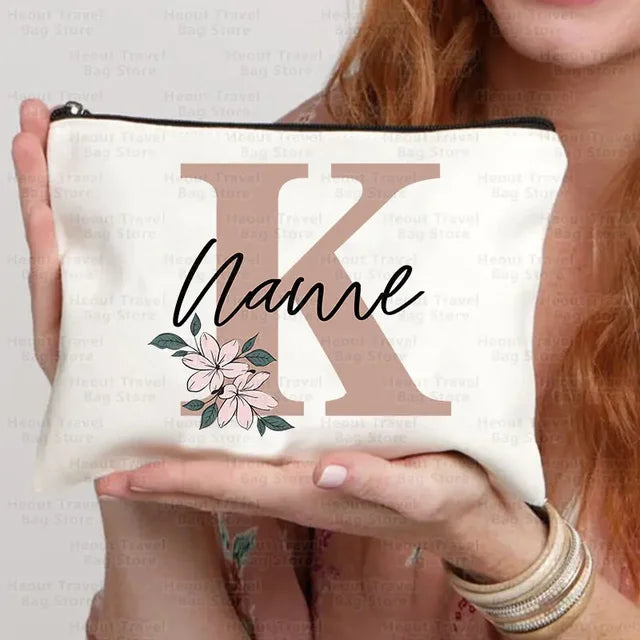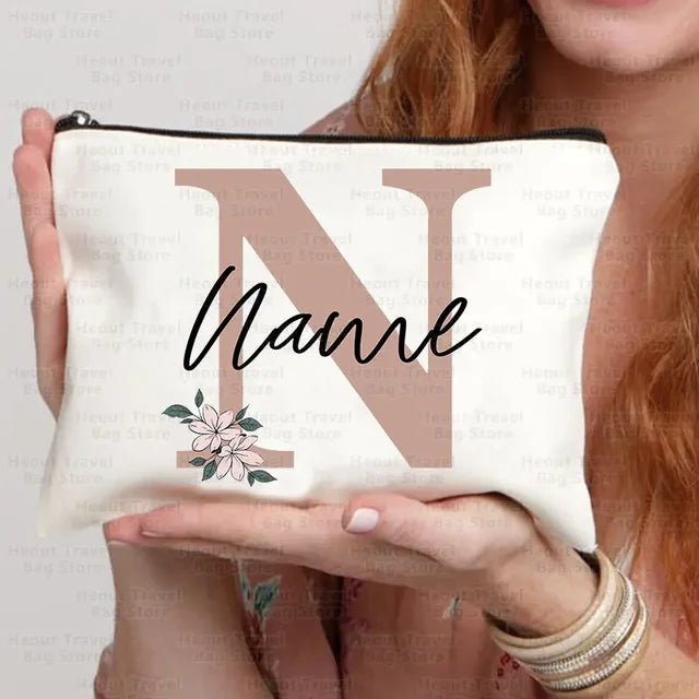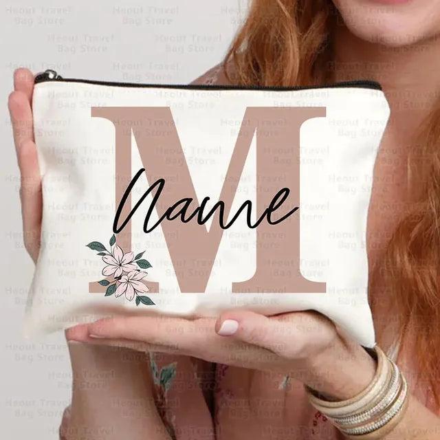 Bolsa de aseo personalizada con nombre personalizado, bolsa de maquillaje con inicial, necesidad de viaje para niños, estuche para lápices para escuela y oficina, regalo para profesores
