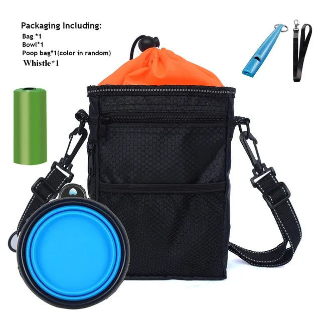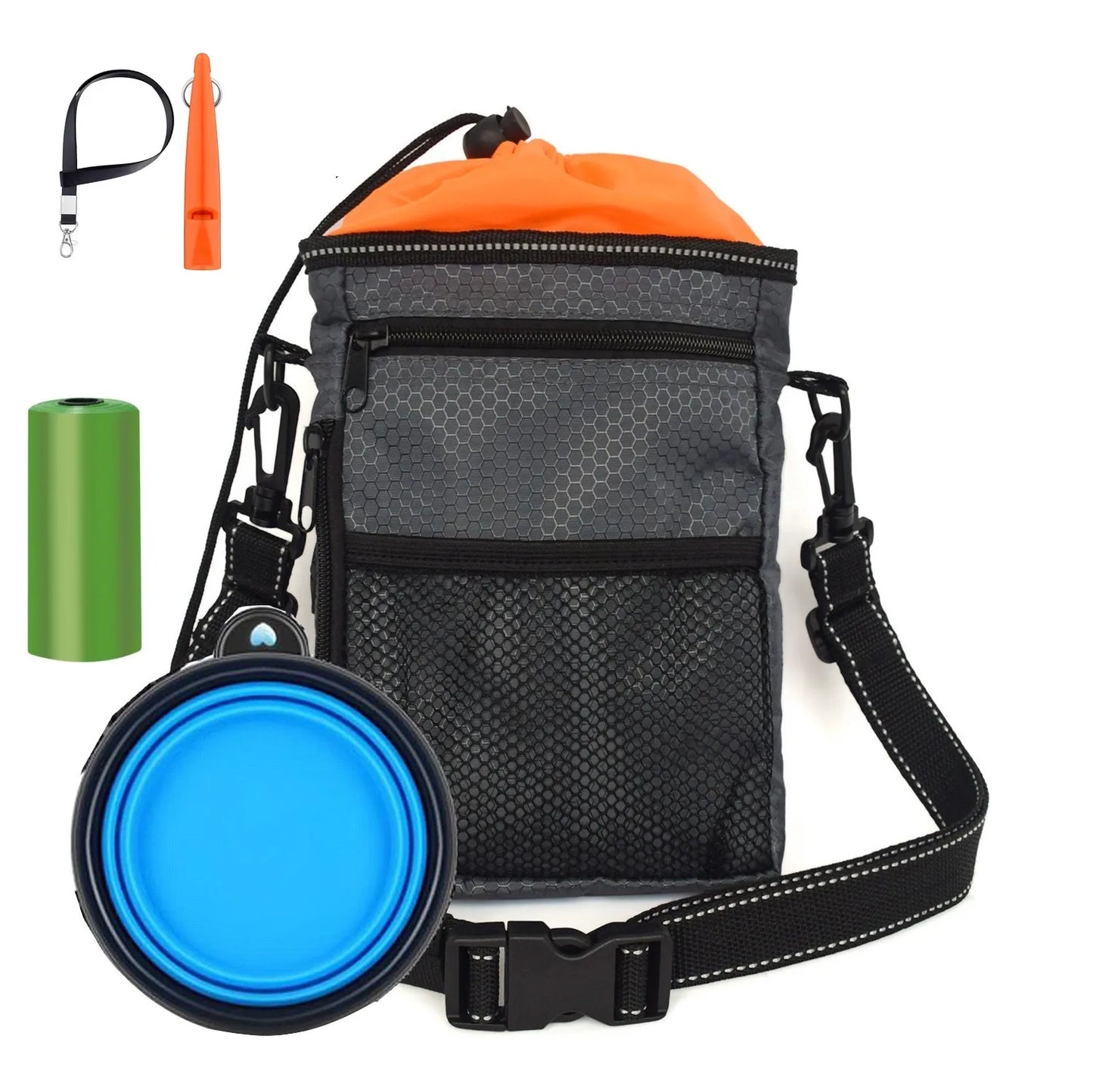 Bolsa portátil para golosinas para mascotas, soporte para alimentos, cinturón ajustable, bolsa de basura, Kit de cuenco plegable, bolsa de entrenamiento para perros multifunción para exteriores