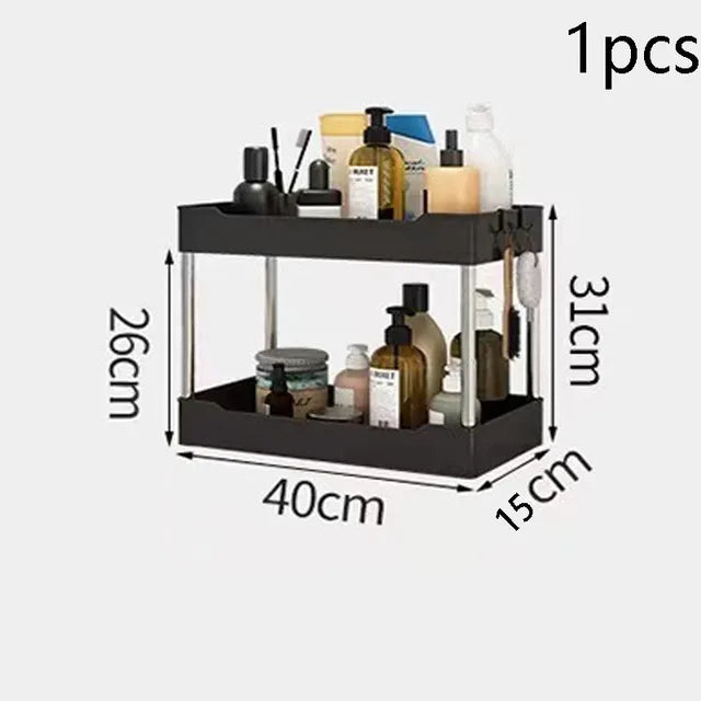 Estante de almacenamiento extraíble, estante de almacenamiento para fregadero de doble capa, estante de almacenamiento de condimentos para cocina, estante de almacenamiento multifuncional para Baño
