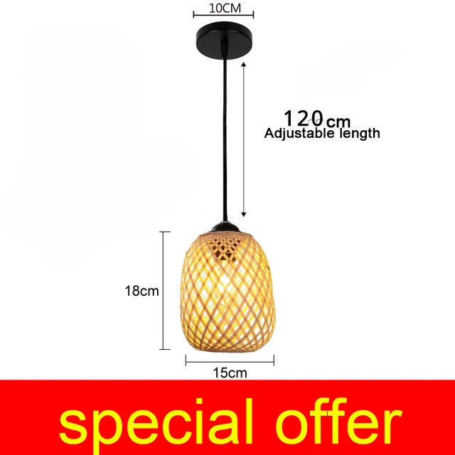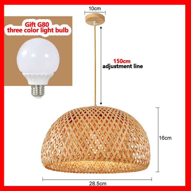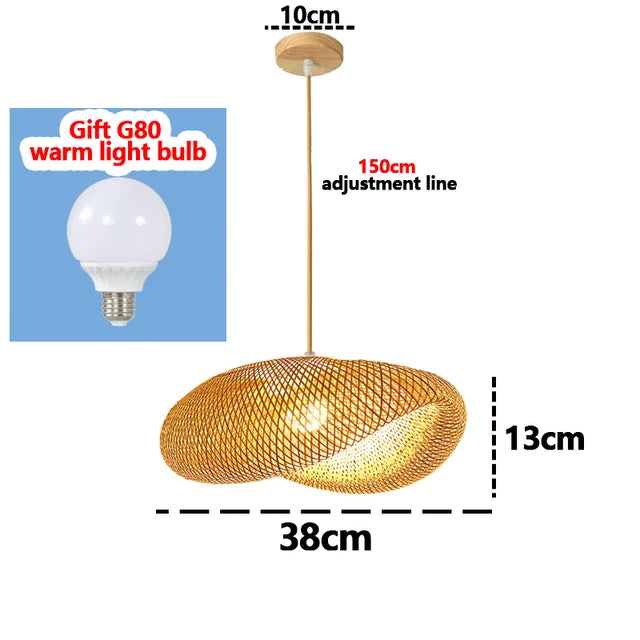 Lámpara colgante de mimbre y bambú, lámpara colgante de techo con brillo, tejida a mano, trenzada, decoración para el hogar y la sala de estar