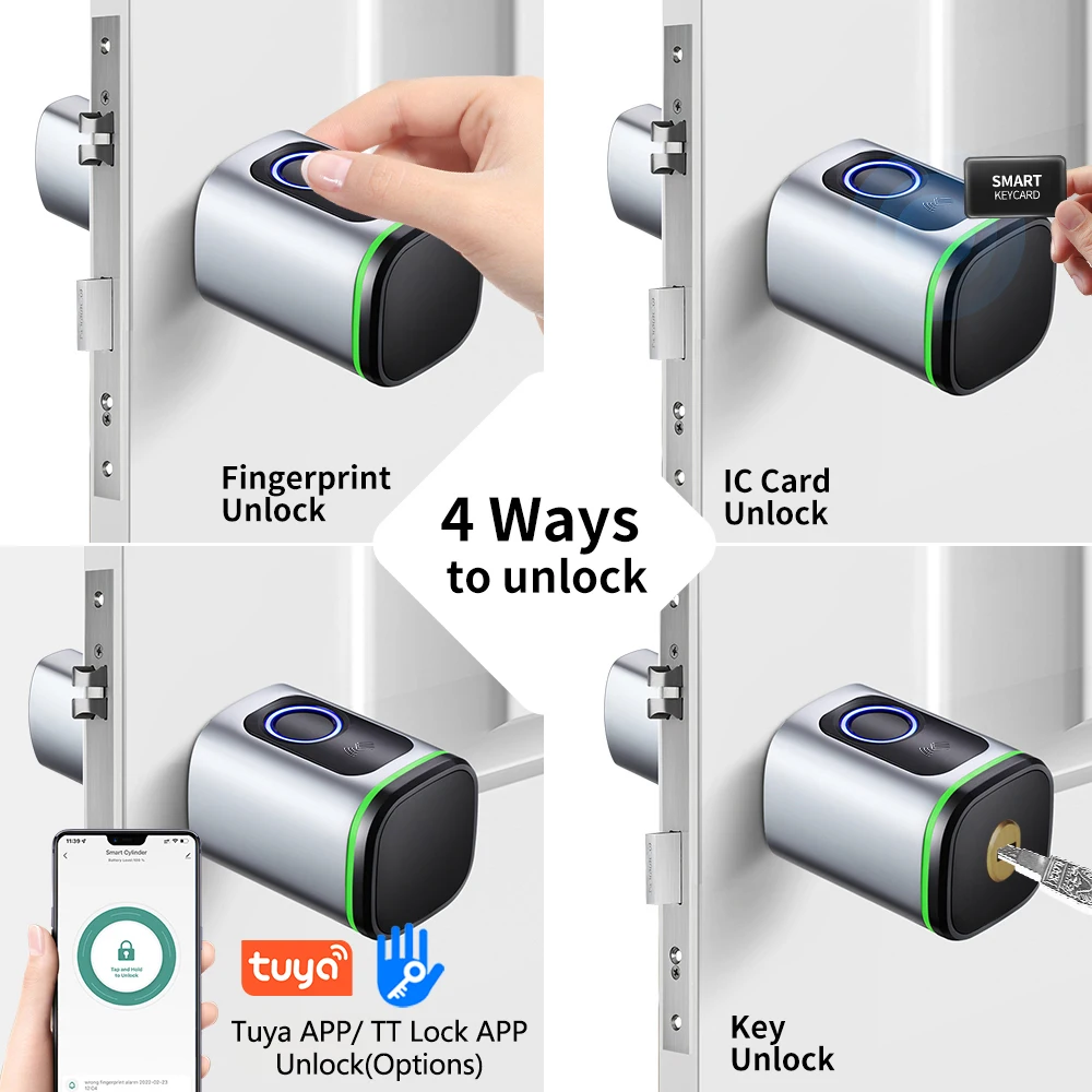 Cerradura de cilindro inteligente con Tuya, Bluetooth, huella dactilar, tarjeta IC de 13,56 mhz, incluye batería CR123A, fácil instalación, reemplazo S1