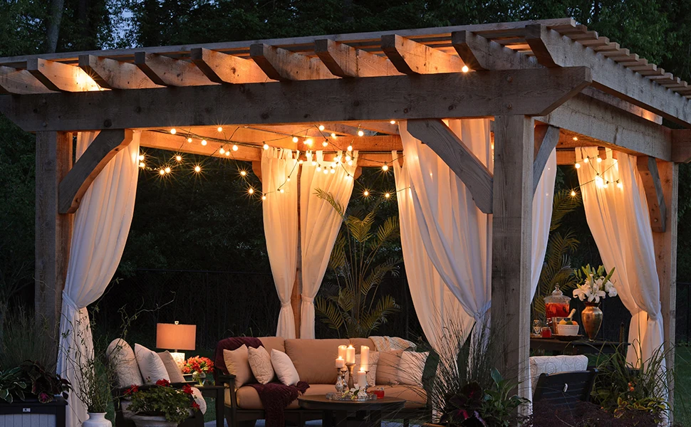 Iluminación práctica y versátil, perfecta para patios, terrazas, pérgolas, porches, jardines, porches, cenadores,