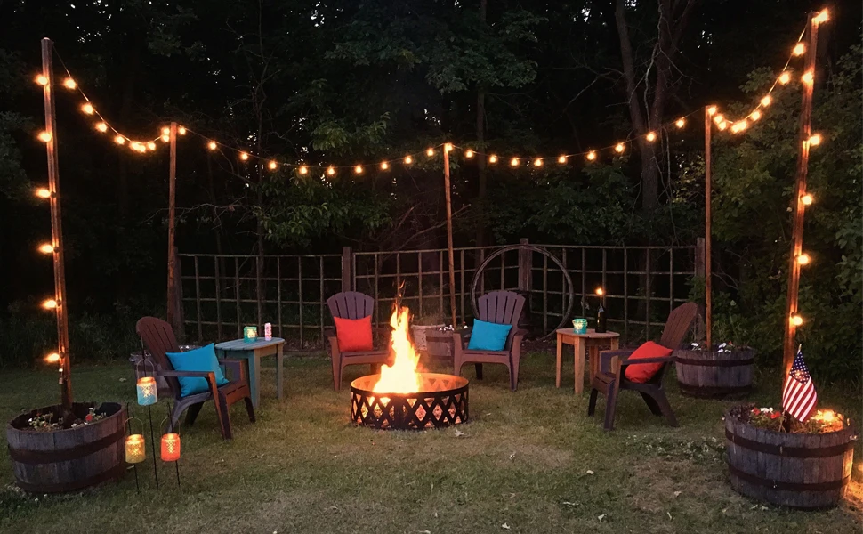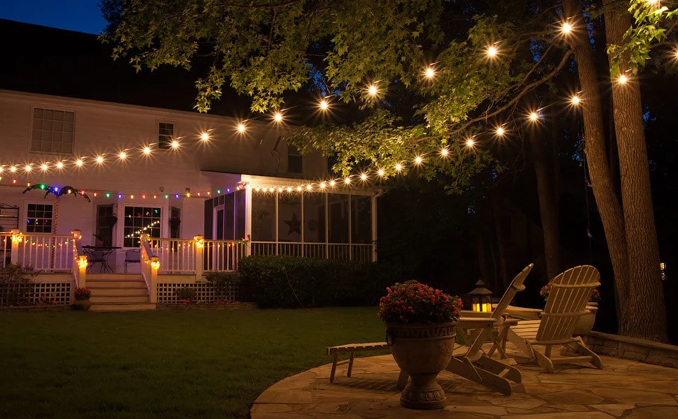 Las luces de cadena LED pueden crear una hermosa atmósfera en el patio trasero donde puede sentarse, relajarse y disfrutar de la noche.