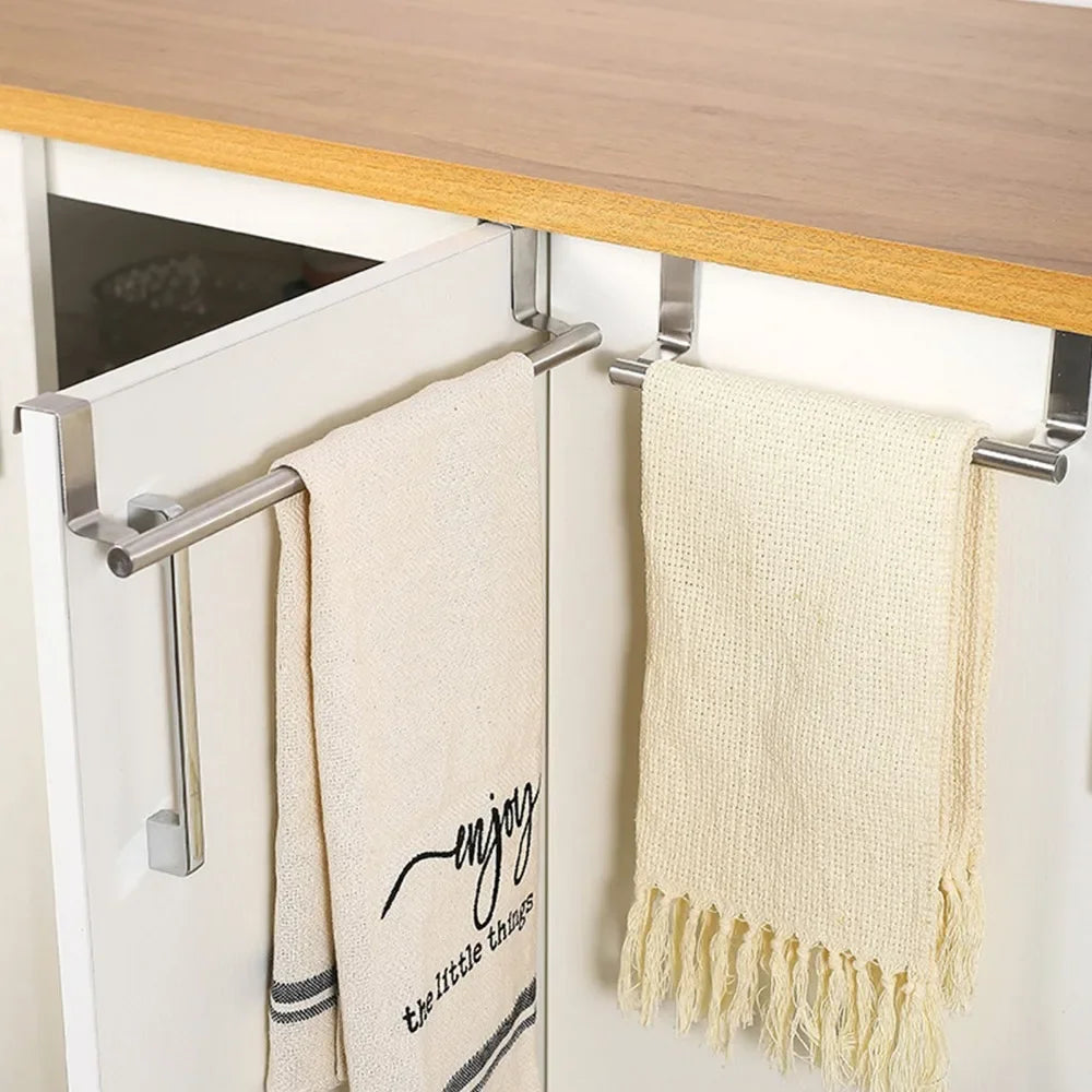 Toallero de acero inoxidable sobre la suspensión de la puerta, sin perforación, armario de cocina, estante colgante para puerta, toallero de baño, organizadores