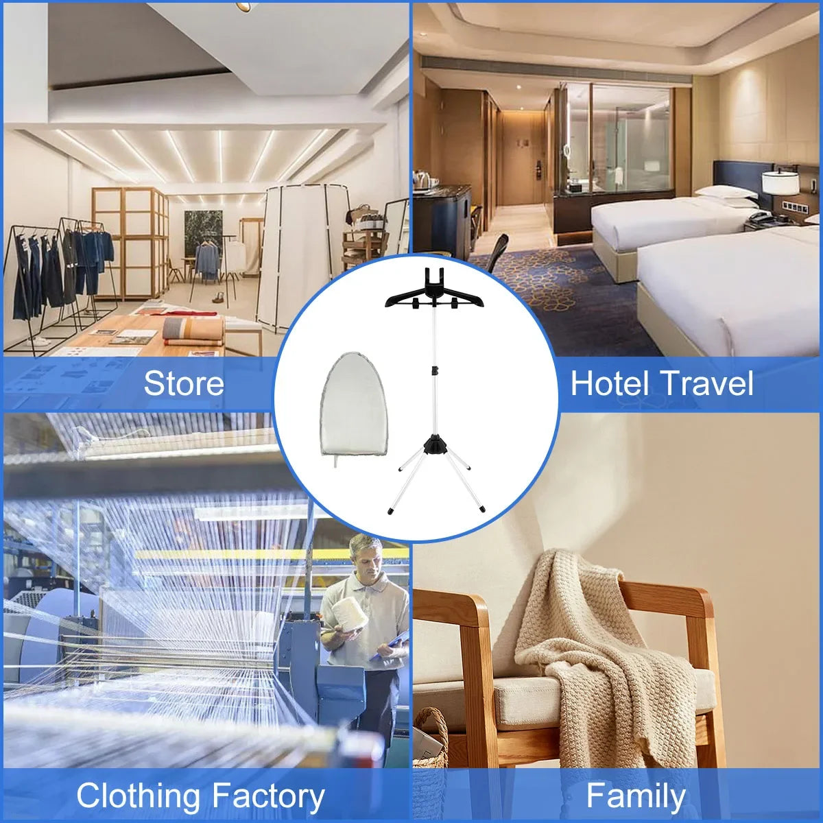 Soporte para vaporizador con tabla de planchar de mano, estante telescópico para vaporizador de ropa, colgador de pie plegable para ropa al vapor