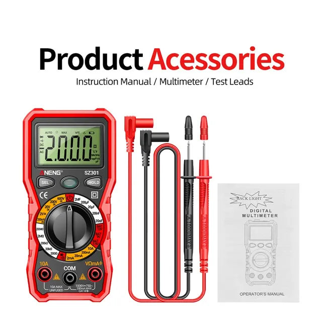 • Grado profesional: El multímetro digital SZ301 SZ302 está diseñado para uso profesional, garantizando lecturas precisas y confiables en todo momento.