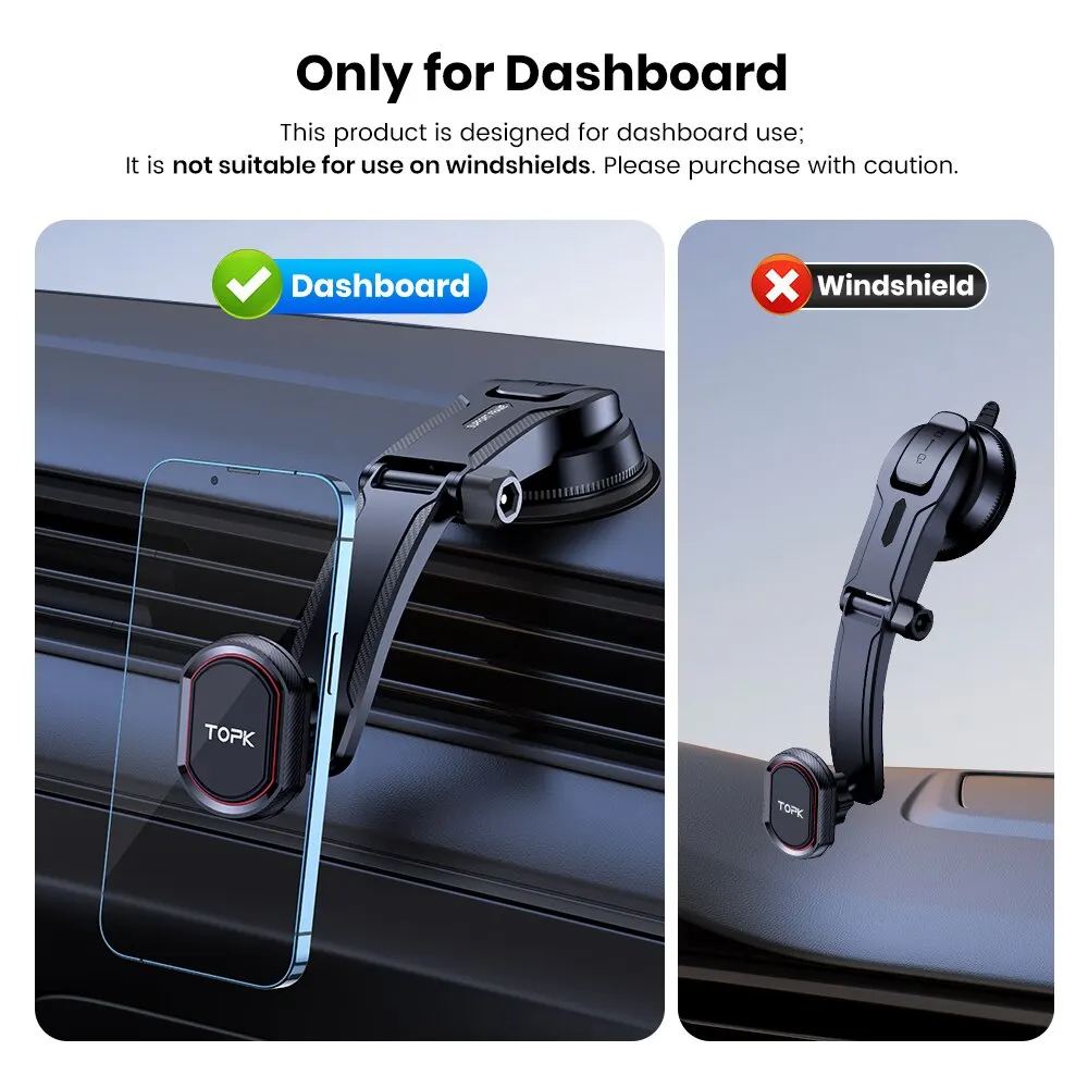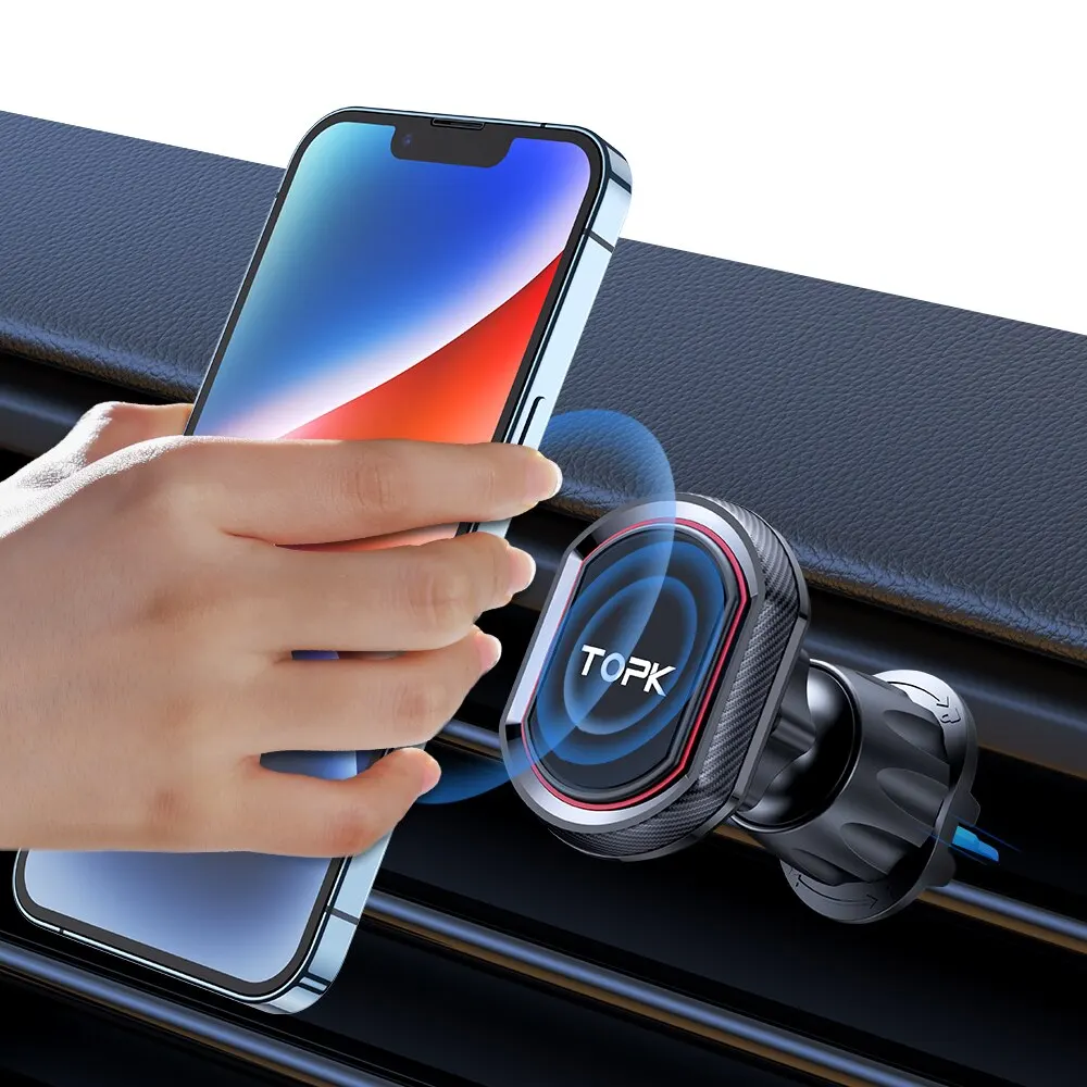 Soporte magnético para teléfono de coche TOPK, soporte manos libres 2 en 1 para salpicadero y ventilación de aire para iPhone, Samsung y Android