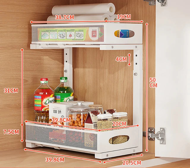 Organizadores y almacenamiento debajo del fregadero, organizador de gabinete extraíble de Metal ajustable de 2 niveles para baño, cocina, despensa