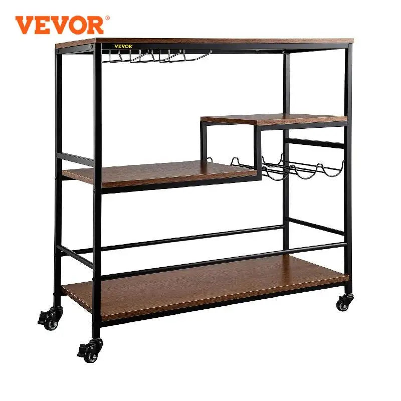 VEVOR-estante para vino de 3 niveles, carrito de servicio con ruedas, cocina comercial, camión de comida, aparador de Buffet, soporte de vidrio para el hogar