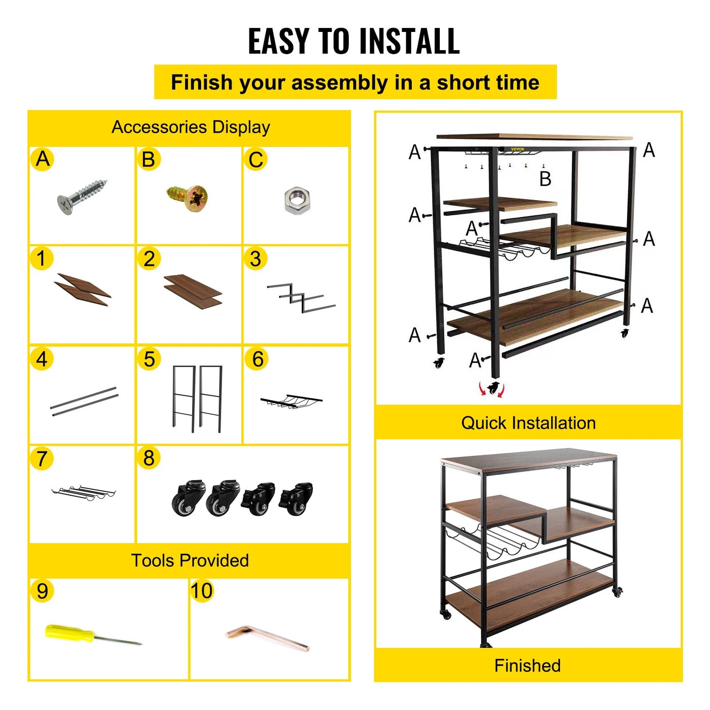 - 【FÁCIL DE MONTAR】 - El carrito de bebidas es fácil de montar y el manual de instalación se proporcionará en el paquete del producto. La instrucción es concisa y fácil de entender sin confusión. Además, le proporcionaremos herramientas, incluida una llave Allen y un destornillador, para ahorrarle tiempo y costos.