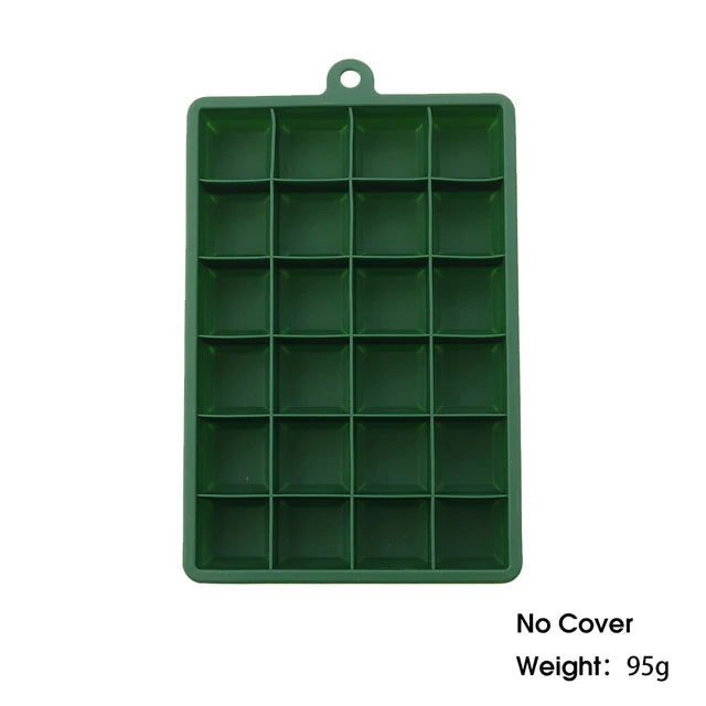 Bandeja de hielo de silicona con tapa/sin tapa, caja cuadrada de 24 orificios, molde auxiliar para puré de alimentos, gelatina de queso, herramienta de cocina, cubo para cóctel