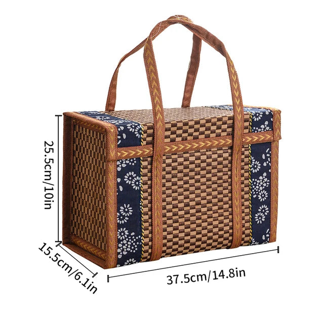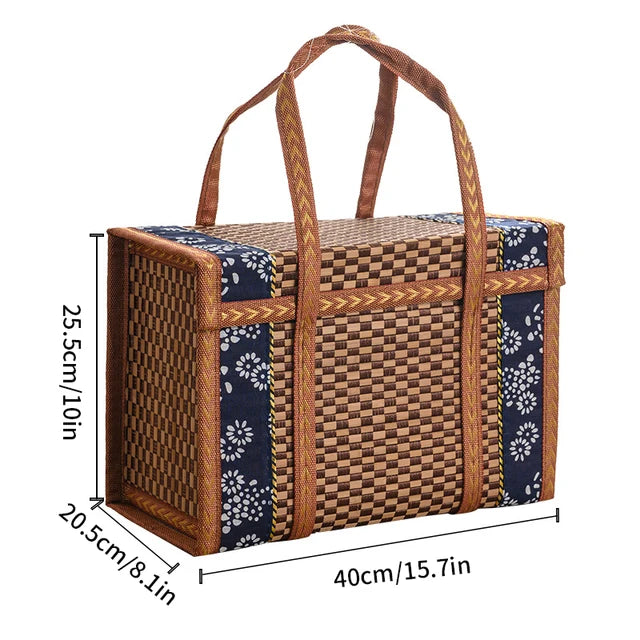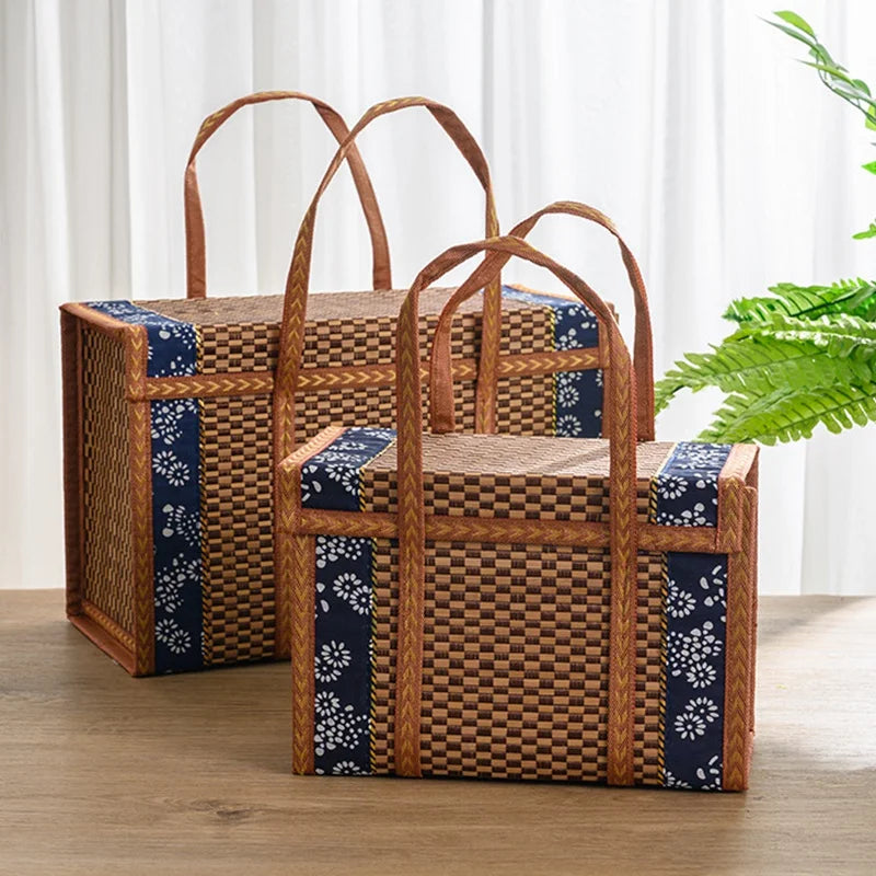 Cesta de almacenamiento tejida, caja de almacenamiento tejida de bambú plegable, organizador de artículos diversos de alta capacidad, cesta de revista periódico, decoración del hogar