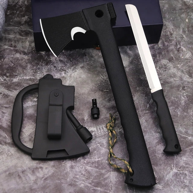 WPKOPYA USA 440C Cuchillo recto pequeño de distribución de hacha táctica para exteriores multifuncional, hacha de registro de trekking en la jungla