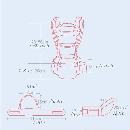 棉质婴儿背带 新生儿和幼儿 带腰凳 多功能 符合人体工程学的可拆卸座椅 柔软婴儿背带 四季皆宜