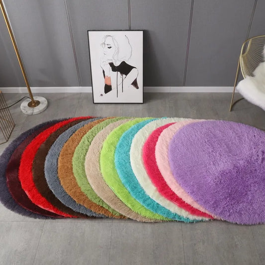 毛绒圆形地毯客厅装饰儿童卧室蓬松白色地毯防滑毯子床边设计室游戏垫