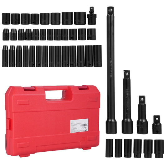 Juego de vasos de impacto métricos de 1/2 unidad, 45 piezas, surtido profundo y poco profundo, tamaños métricos de 9 mm a 32 mm, acero al cromo vanadio de grado superior