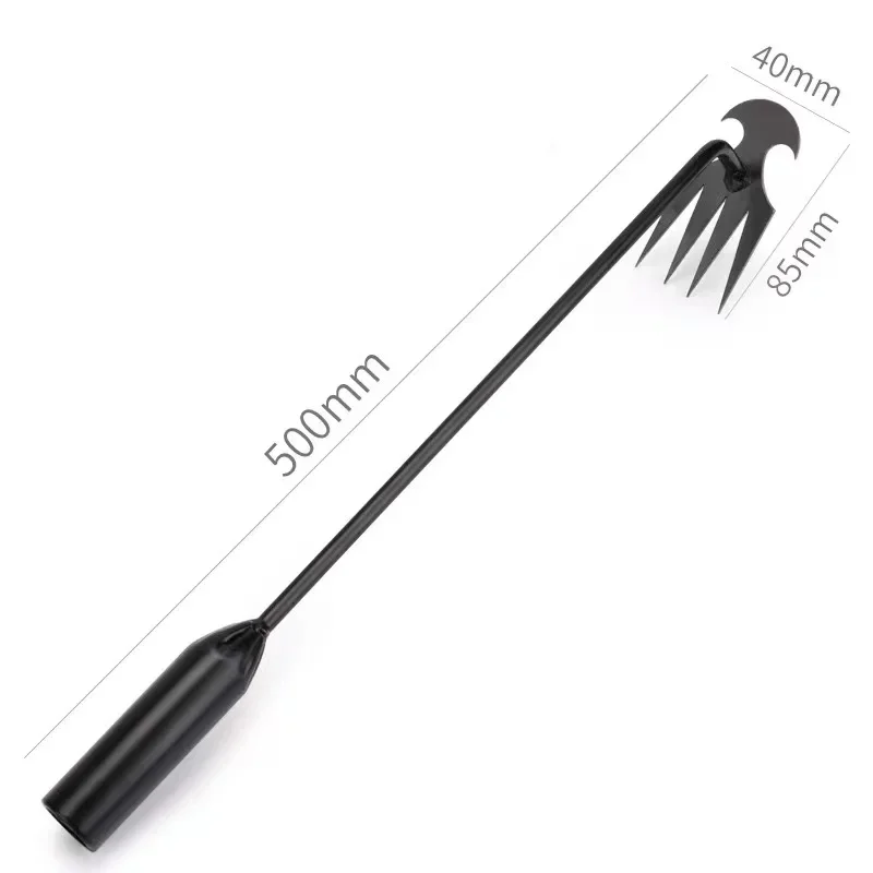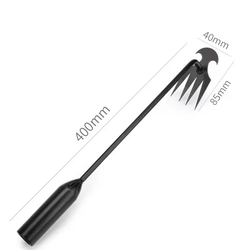 【耐用材质】4齿除草工具采用优质防锈锰钢制成,硬度高,经久耐用。8毫米钢条具有很高的抗冲击性和抗拉强度,不易变形或断裂。抛光表面不粘。