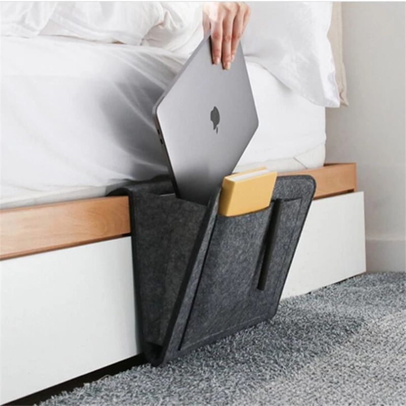 Bolsa de almacenamiento para cabecera de cama de fieltro, organizador para cama, escritorio, sofá, TV, Control remoto, Caddy colgante, organizador de almacenamiento para sofá, soporte para cama con bolsillos