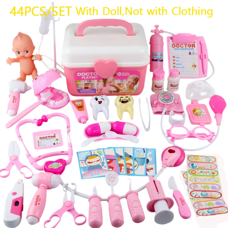 医疗玩具儿童医生角色扮演套装 44 件仿真牙医盒女孩益智游戏玩具儿童听诊器