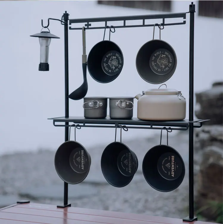 户外铝合金收纳架可折叠野营桌面双层储物架露营挂架野营用品