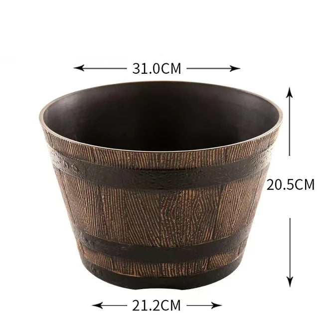 模仿酒桶设计的塑料花盆适合室内和室外花园家庭植物