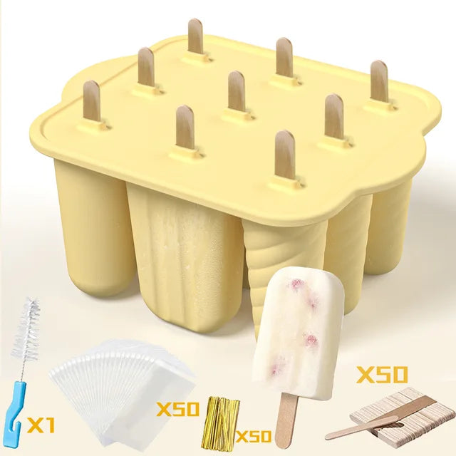 优质冰棍制作模具套装:配有 50 根优质木制冰棍棒、冰棍袋和清洁刷。可用洗碗机或温肥皂水手洗。